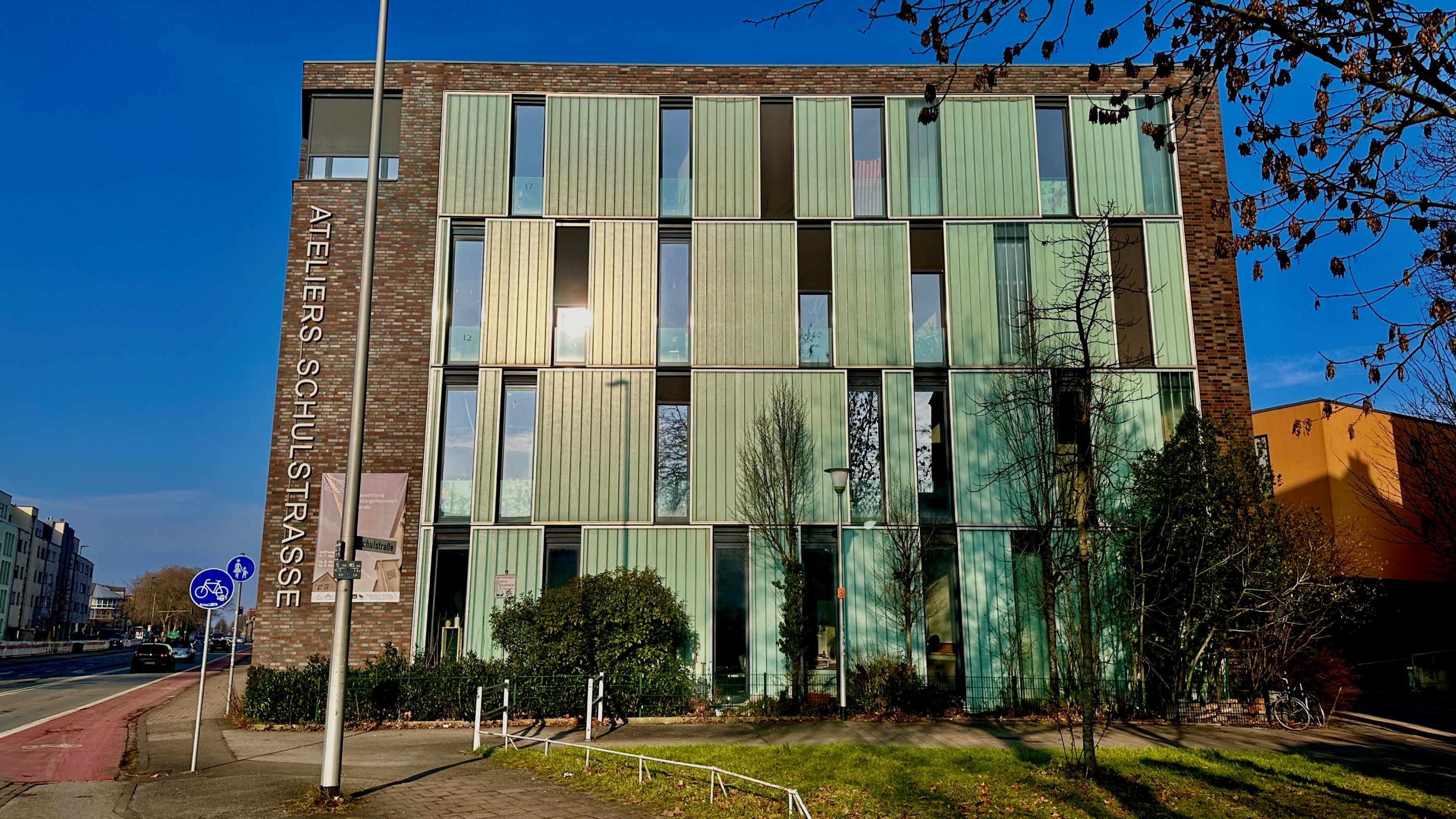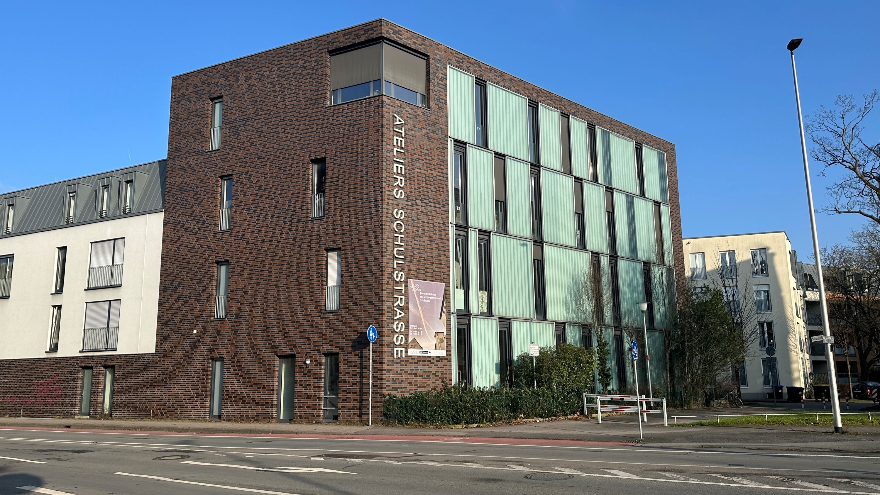 entstand zwischen der Grevener Straße und der Schulstraße dieses längliche Gebäude mit Wohnen und Künstler-Ateliers.