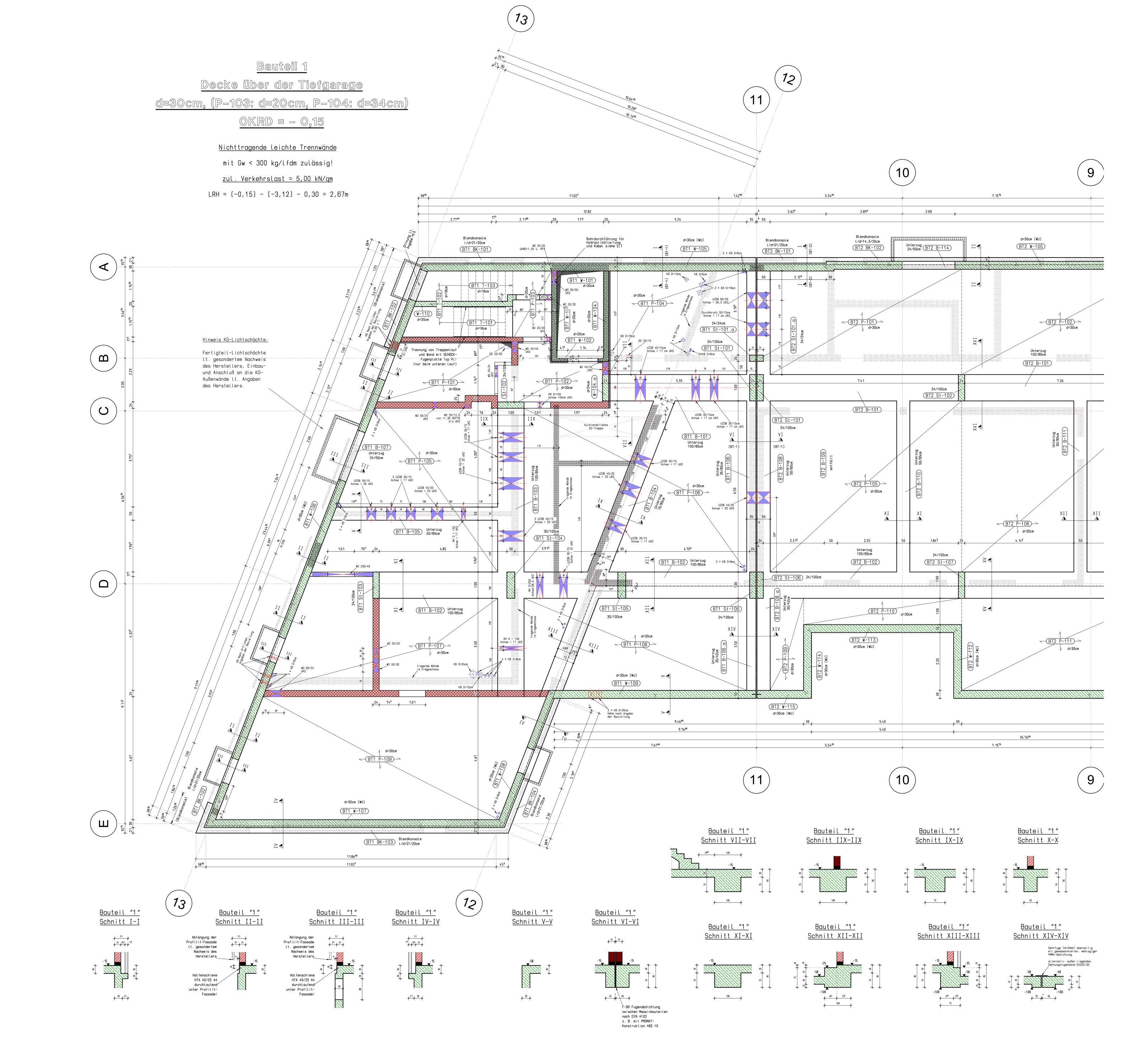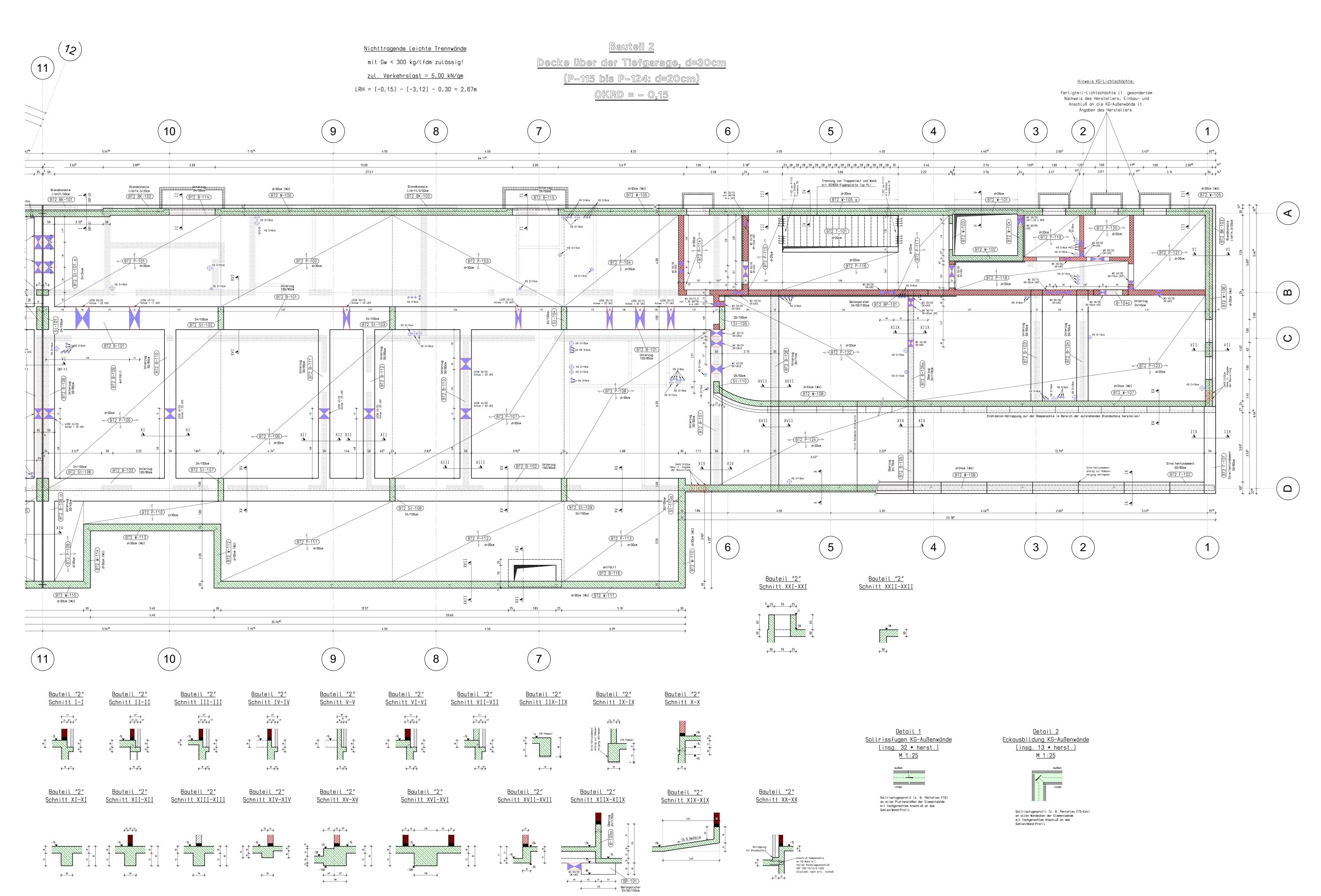 In der großen Tiefgarage mit Zufahrt auf der nördlichen Gebäudeseite konnten die erforderlichen Stellplätze sowie Lagerflächen für die Künstler untergebracht werden.
