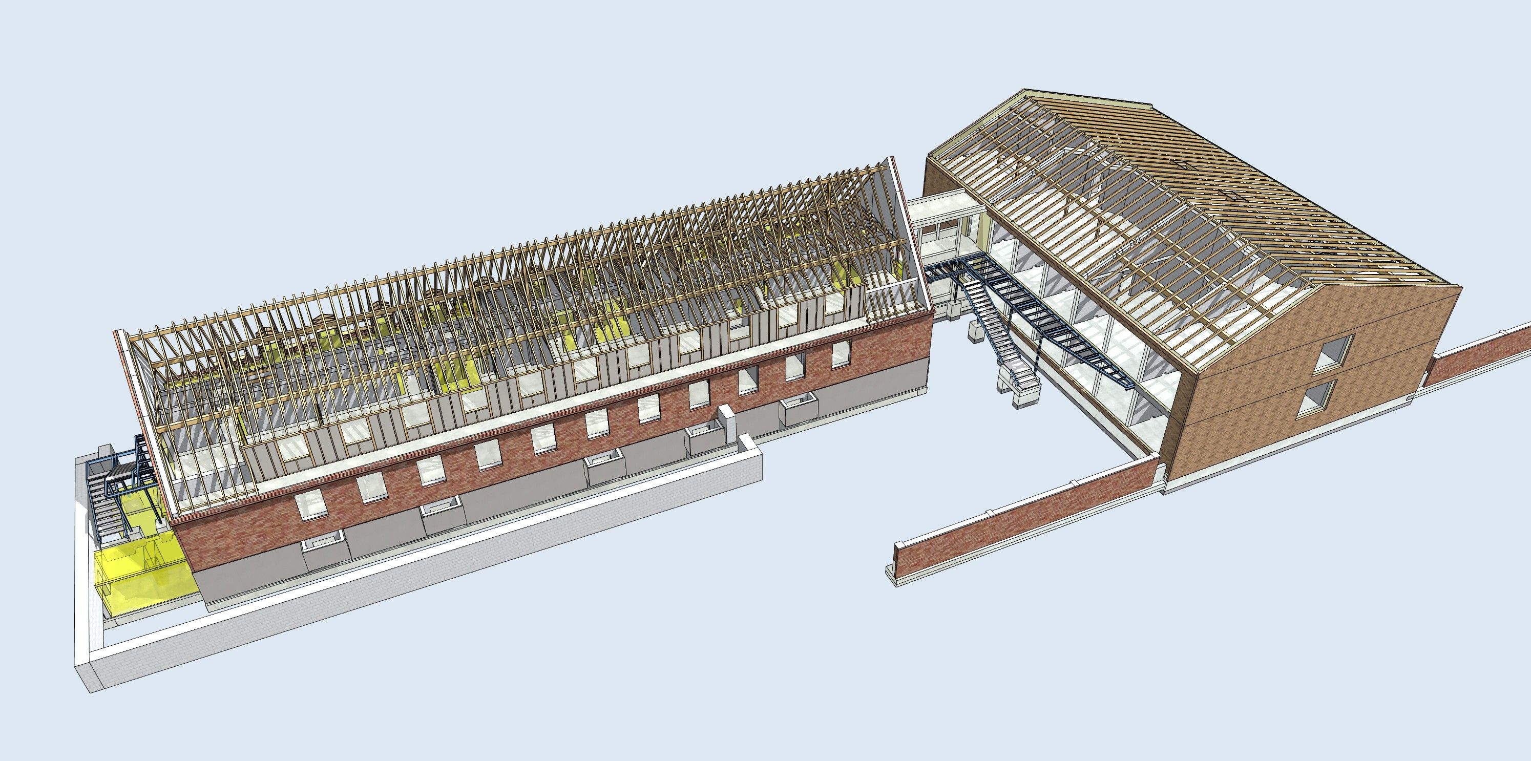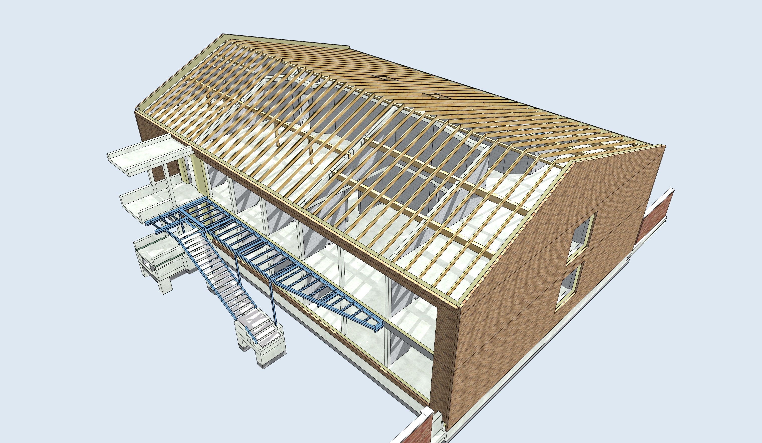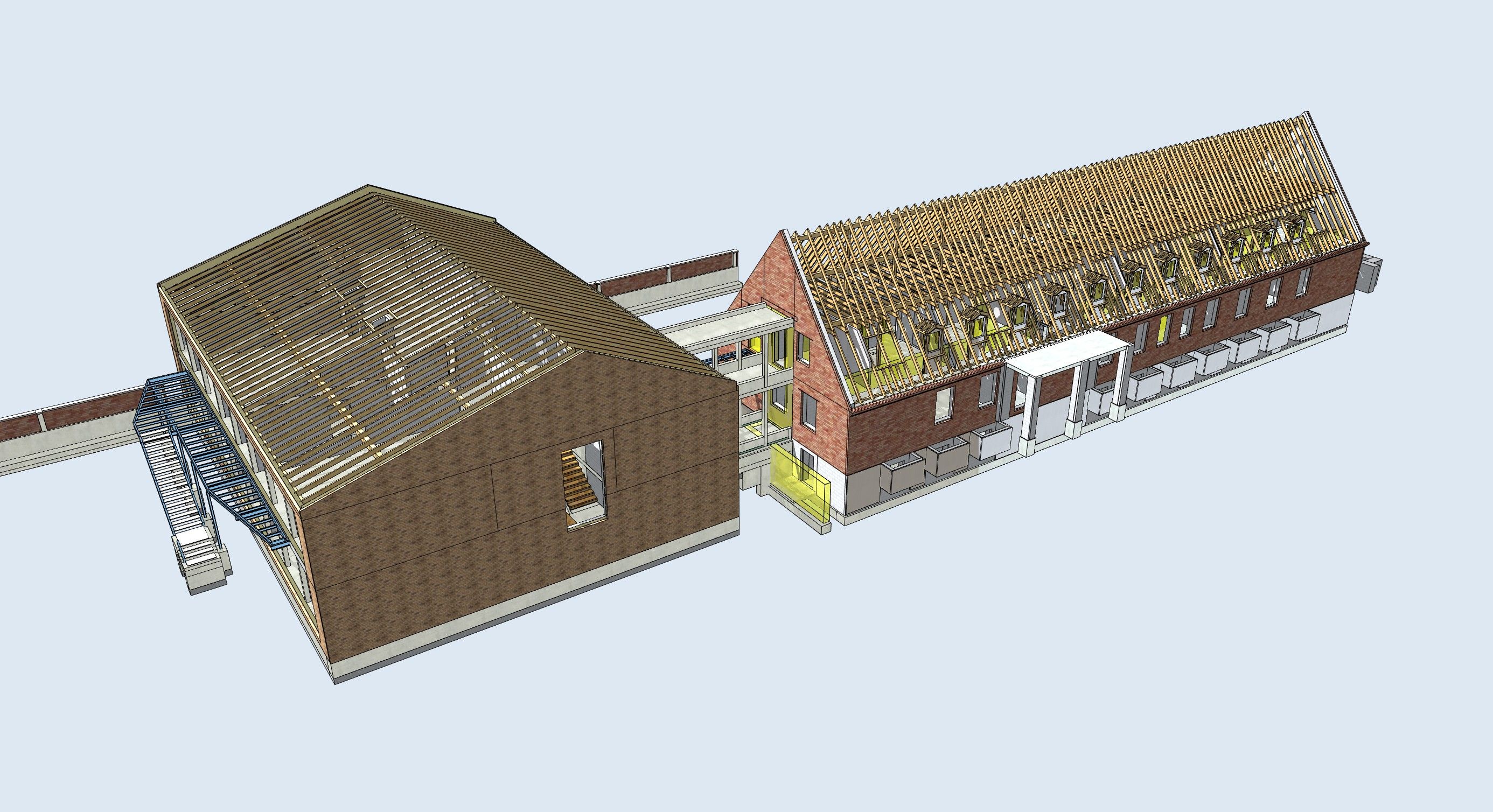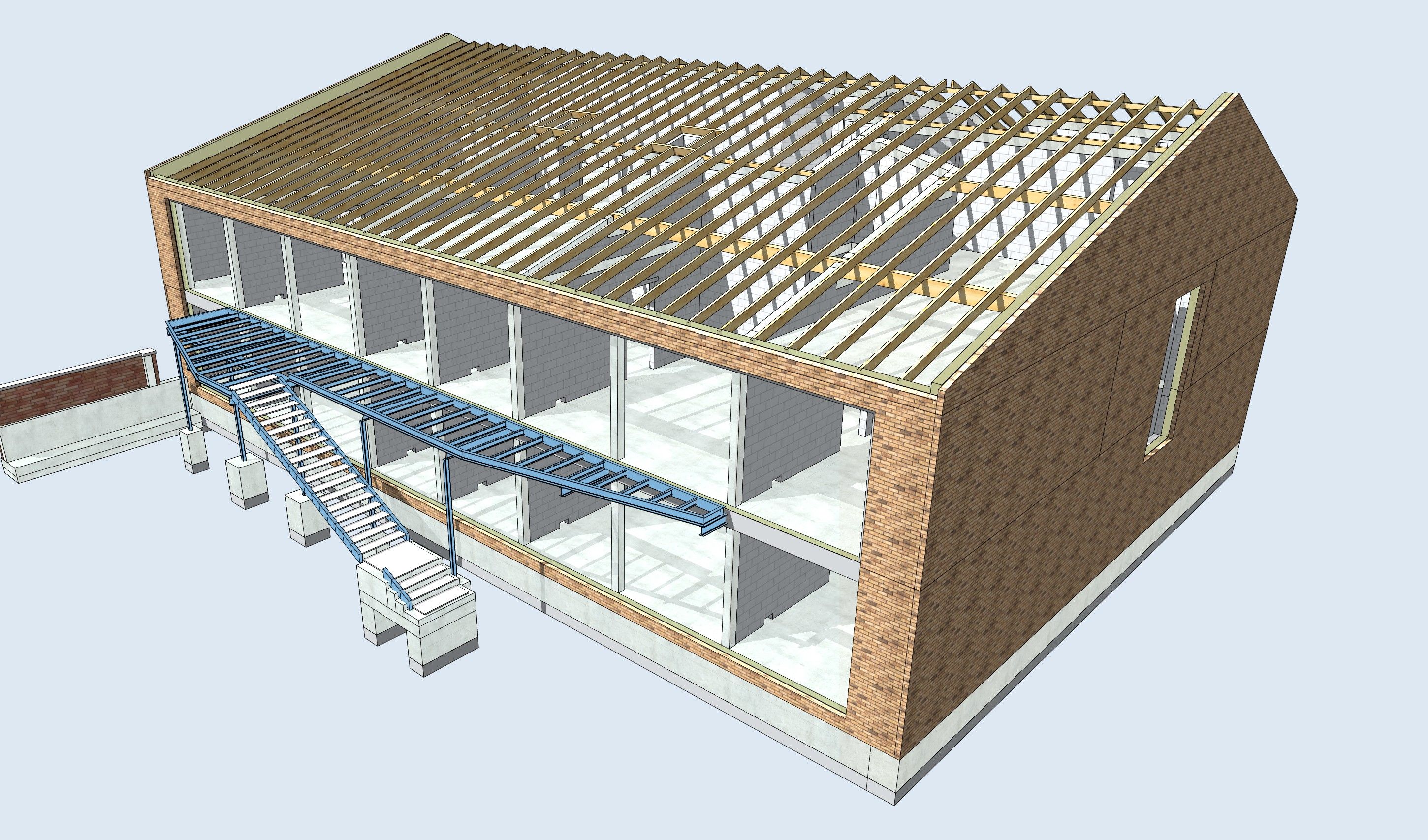 die erforderlichen Zugänge und Fluchtwege für die Obergeschosse