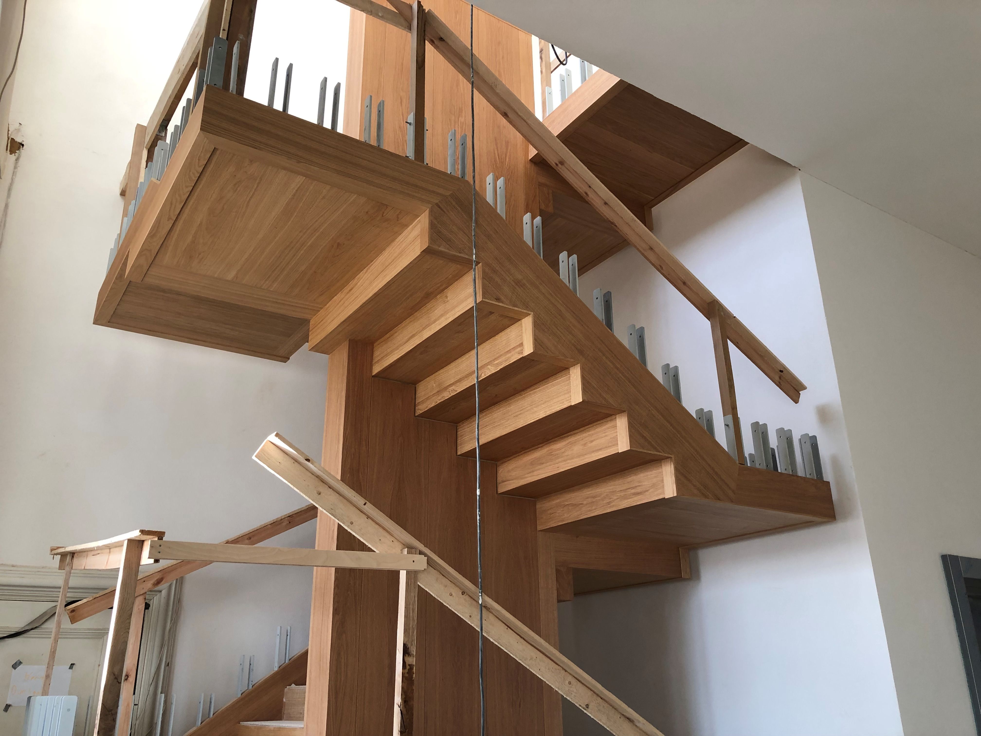 Holzscheibe woran die frei auskragenden Holzstufen und Podeste verankert wurden. Sämtliche Vertikallasten