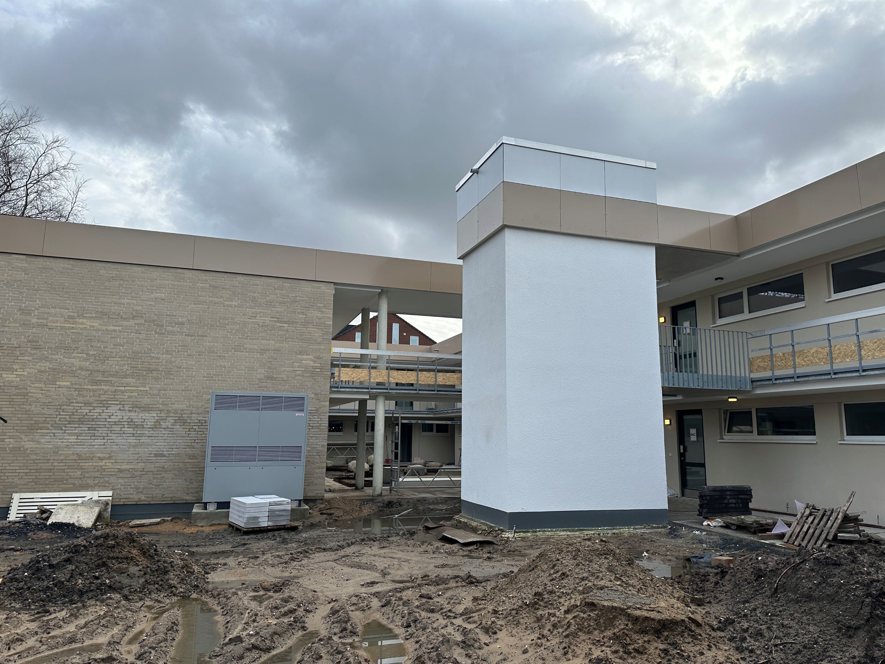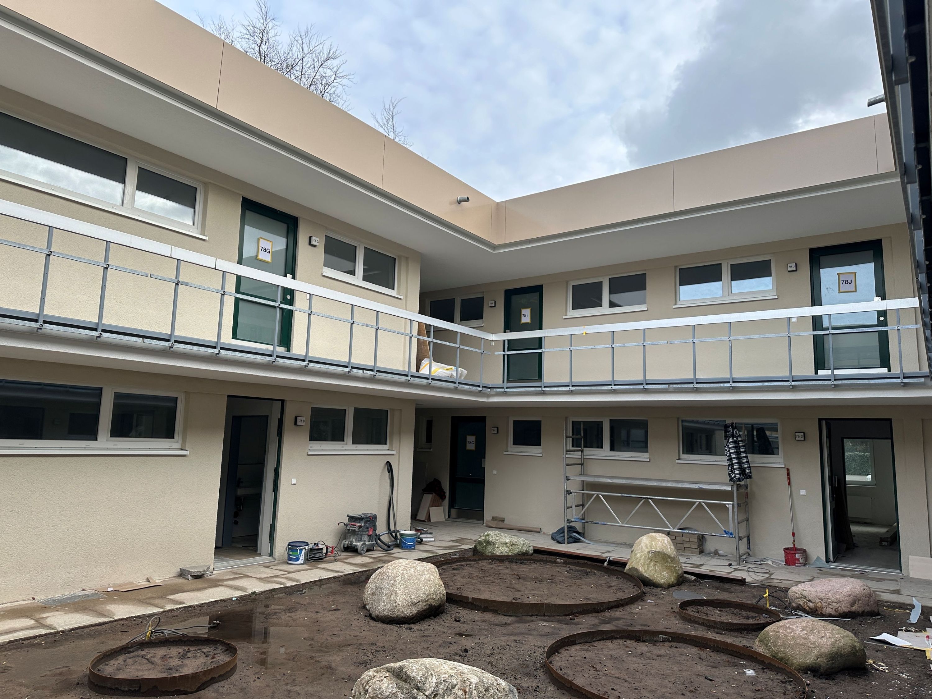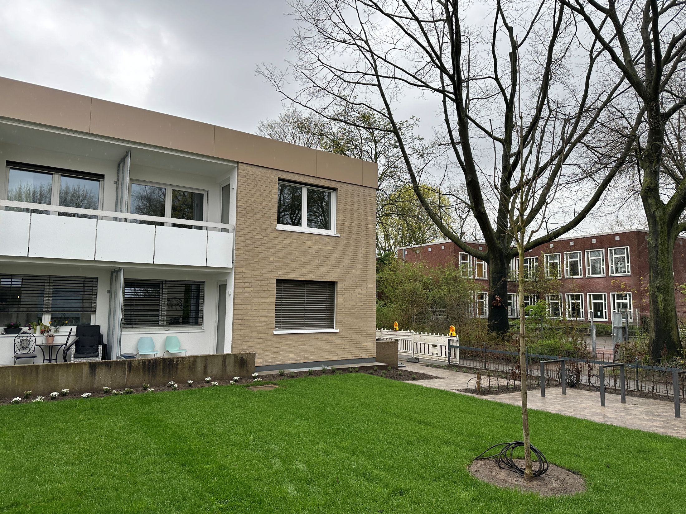 im Gartenhof errichtet und in allen Geschossen an den Bestand angebunden.