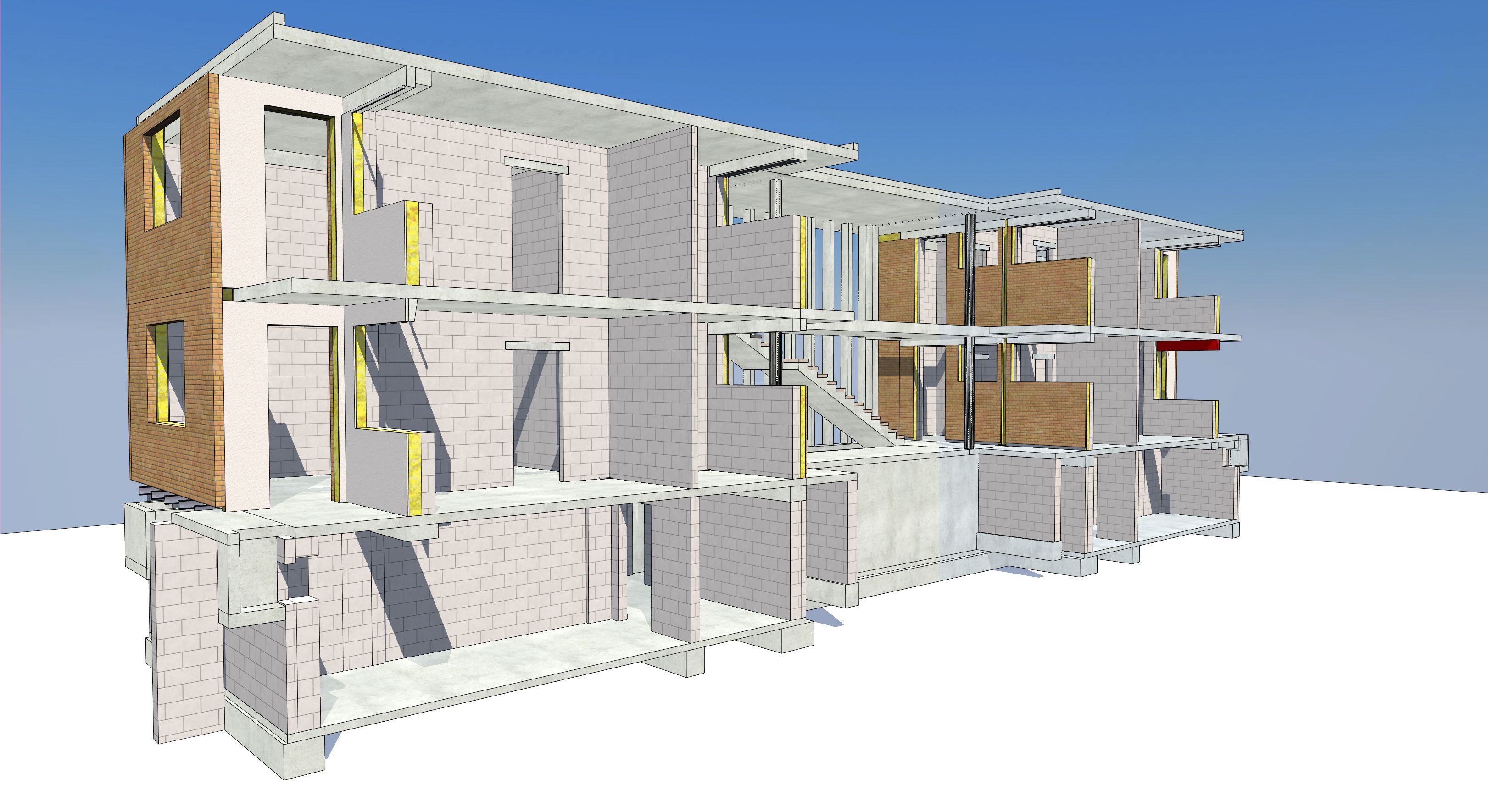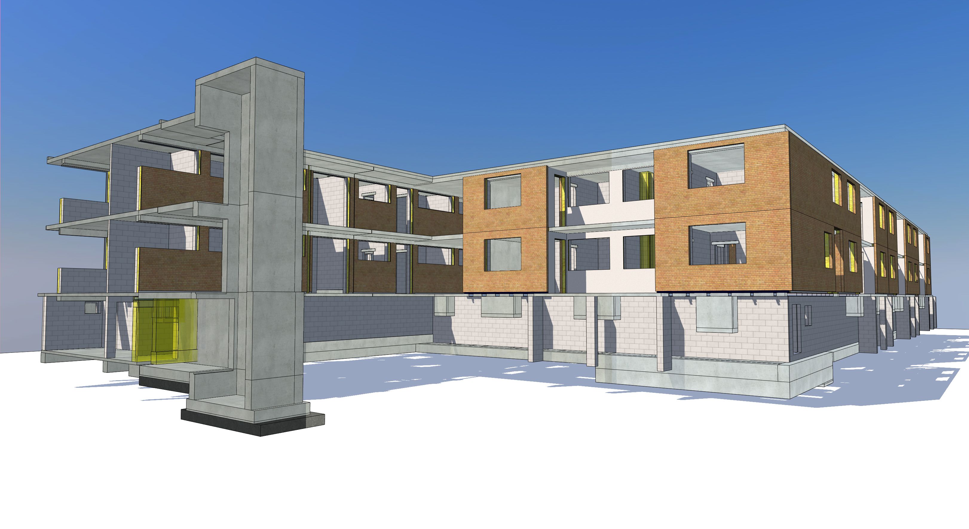 Um die Wärmebrücken der frei auskragenden Laubengänge und Loggien zu entschärfen wurden sämtliche Detailpunkte